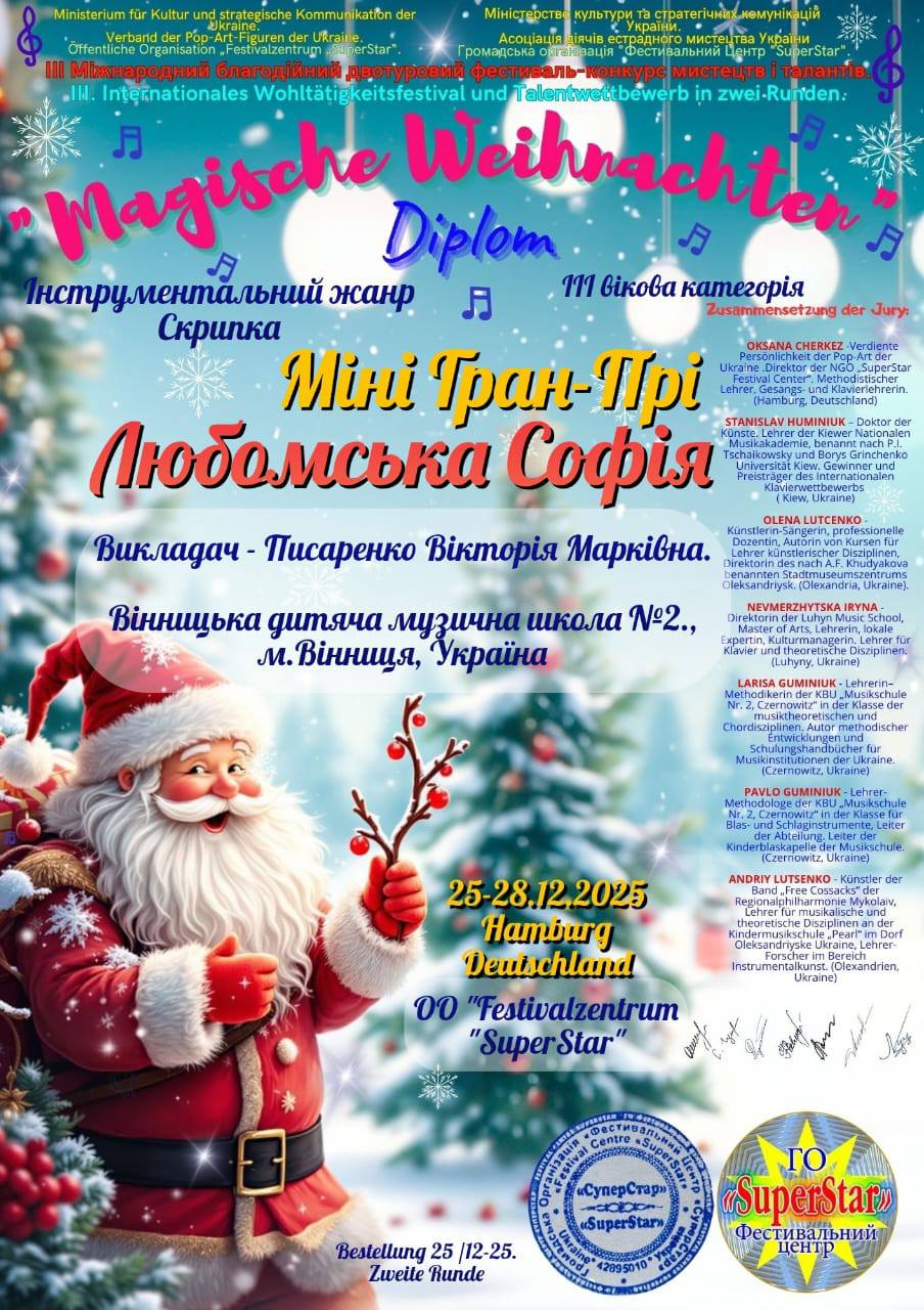 Щиро вітаємо ученицю 6-Б класу Софію Тіханович із перемогою у конкурсі. Софія посіла І місце у IV Всеукраїнському конкурсі дитячо-юнацької творчості «Чарівна осінь»! Перемогу принесла картина «Осінній затишок» - тепла, атмосферна осіння сцена, у якій панує особливий настрій. Бажаємо Софії невичерпного натхнення, сміливих творчих ідей та нових яскравих перемог! Пишаємося твоїм талантом і бажаємо впевнено рухатися до нових вершин!