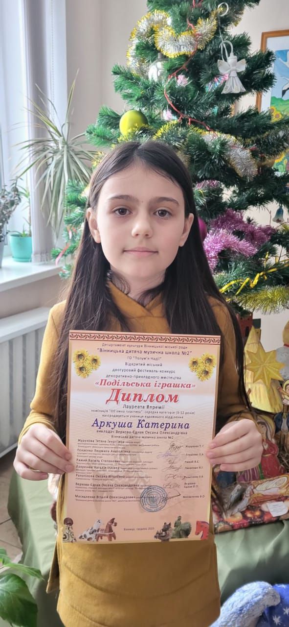 Вітаємо ученицю 4-Б класу Аркушу Катеринку за зайняте 2 місце у міському конкурсі декоративно-прикладного мистецтва"Подільська іграшка". Твоя праця,творчість та натхнення зробили цей результат справжнім святом! Бажаємо тобі й надалі мріяти, створювати красиві ідеї та завжди досягати нових висот! Нехай твоя кожна іграшка приносить радість людям,а твоє серце світиться щастям і гордістю за власні досягнення .