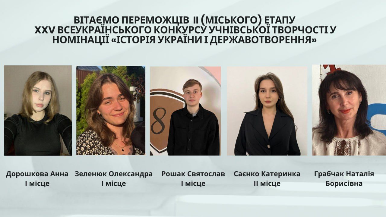 Це доказ того, що наполеглива праця, цікавість і любов до історії дають неймовірні результати. Величезна подяка нашій чудовій наставниці — Грабчак Наталії Борисівні, яка надихає, підтримує і допомагає своїм ученицям розкривати таланти. Пишаємося вами!